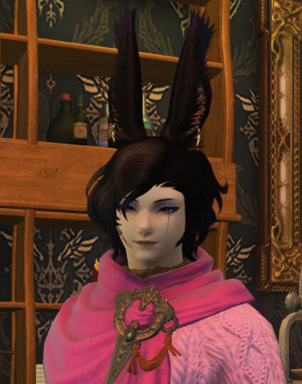 Unmistakably an outsider and new to the city of Ishgard, this Viera nevertheless seems to be fitting in just right. Attentive, caring, curious and straight-forward, he earned the trust of the rest of the team and now actively takes part in Library's work, be it sweeping the floors, arranging chairs and bringing a cup of tea to the guest, or finding the right book.