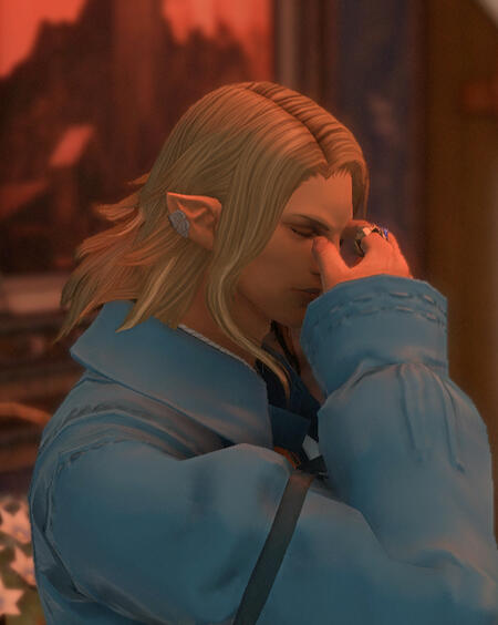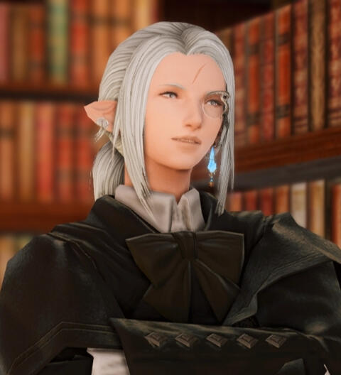 Polite and proper to a fault, slightly anxious proprietor of "The Scholar's Virtue" is a noble Elezen with scholarly background. He eagerly involves himself into all aspects of the Library life, from welcoming guests and assisting them with their requests, to the very management of the Library's property, contractors and personnel.